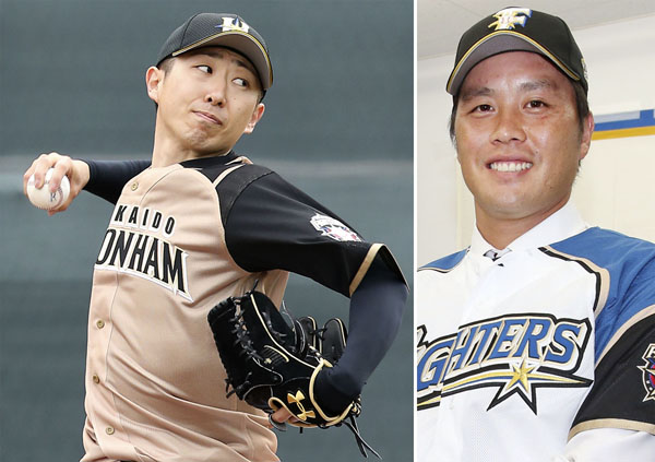 日ハム・七色の変化球を操る金子(右は藤岡投手)/(C)共同通信社