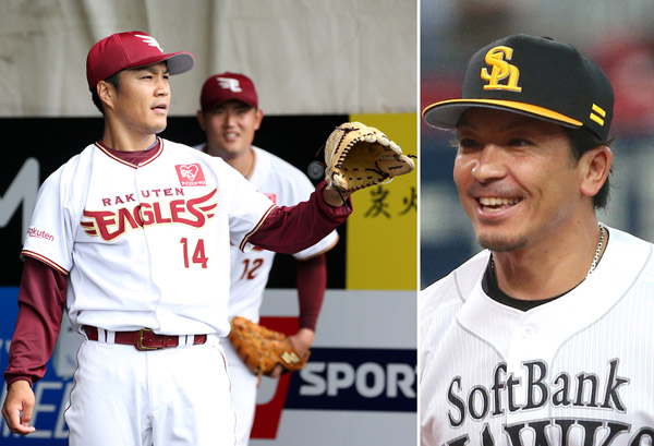 楽天・則本(左)とソフトバンク・松田(C)共同通信社