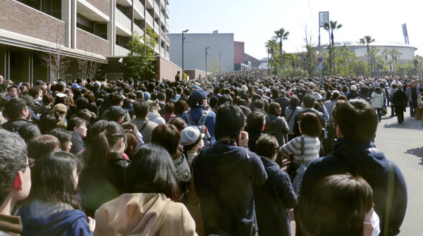 マツダに詰めかけた黒山の人だかり(C)共同通信社