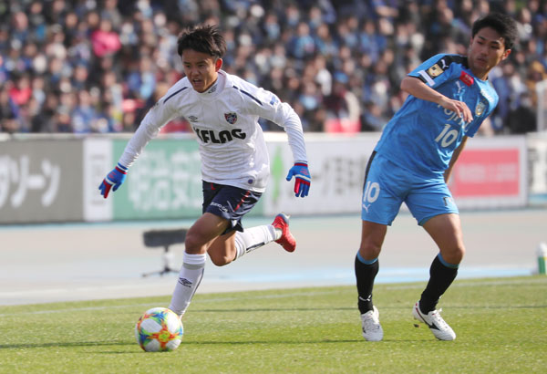 川崎選手をキリキリ舞いさせるMF久保(C)Norio ROKUKAWA/office La Strada