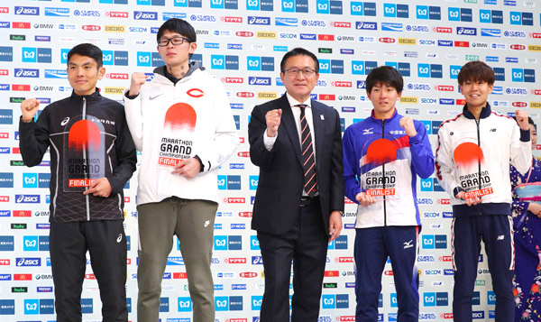 MGC出場権獲得の表彰式に出席した瀬古リーダー(中)(C)日刊ゲンダイ