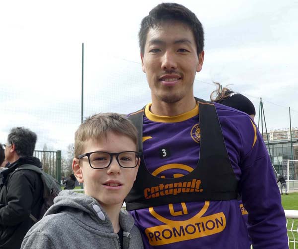 少年ファンと写真に納まるトゥールーズDFの昌子(C)元川悦子