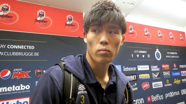 リーグ戦後に質問に答えるDF冨安(C)元川悦子