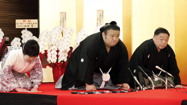 「武士道精神を重んじ…」(大関昇進の伝達式の貴景勝)/(C)共同通信社