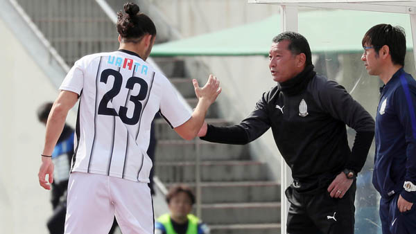交代する選手を送り出す都並監督(C)Norio ROKUKAWA/office La Strada