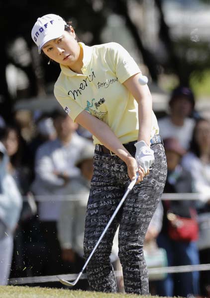 最終日に18番でアプローチショットを放つ李知姫(C)共同通信社