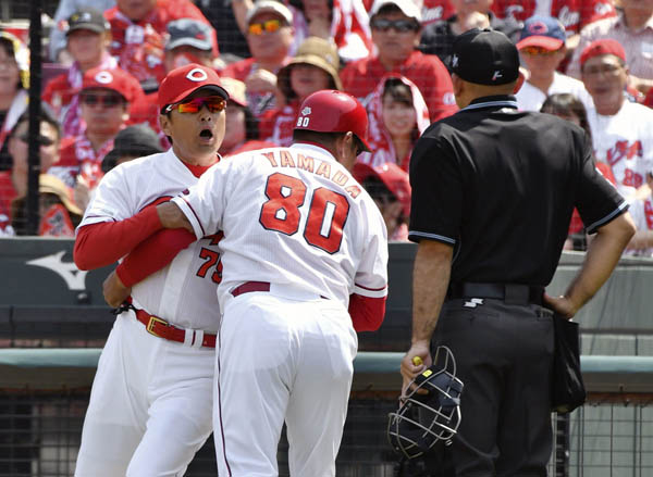 令和初退場の緒方監督(C)共同通信社