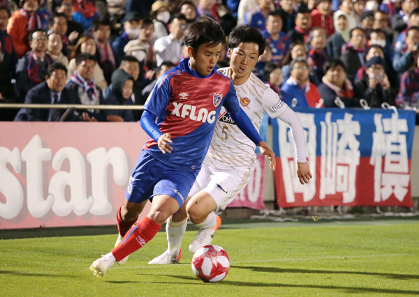 8日の仙台戦で奮闘するMF久保(C)Norio ROKUKAWA/office La Strada