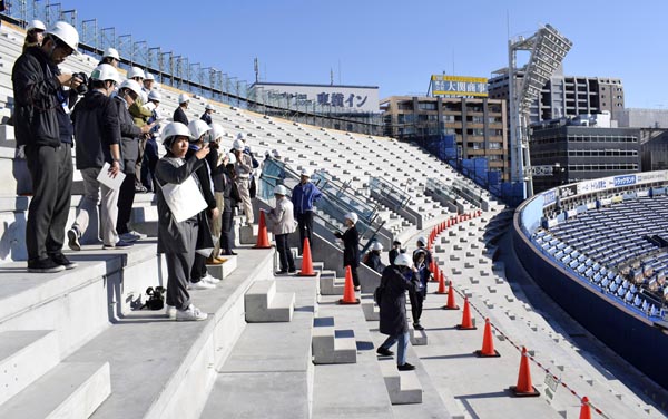 増設された「ウイング席」(改修工事時の横浜スタジアム)/(C)共同通信社