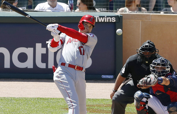 ツインズ戦の七回に中前打を打つ大谷(C)共同通信社