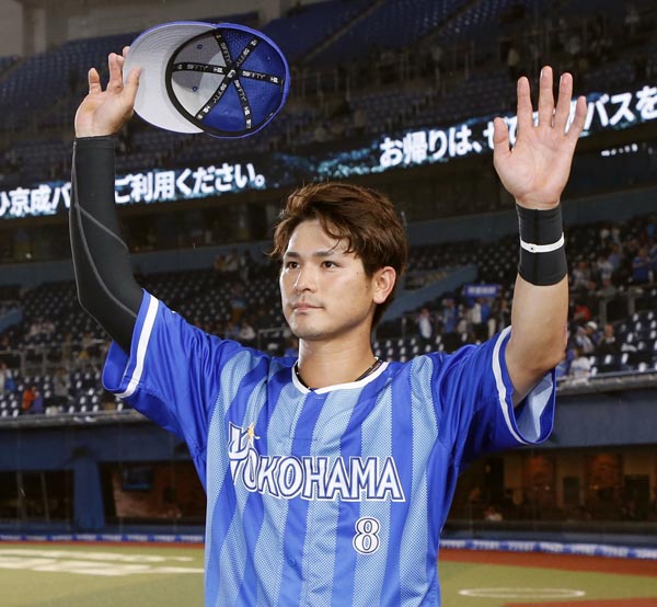 声援に応えるDeNA・神里(C)共同通信社