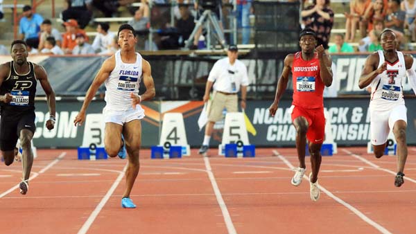 全米大学選手権 男子100メートル決勝で、9秒97の日本新記録をマークして3位となった(C)共同通信社
