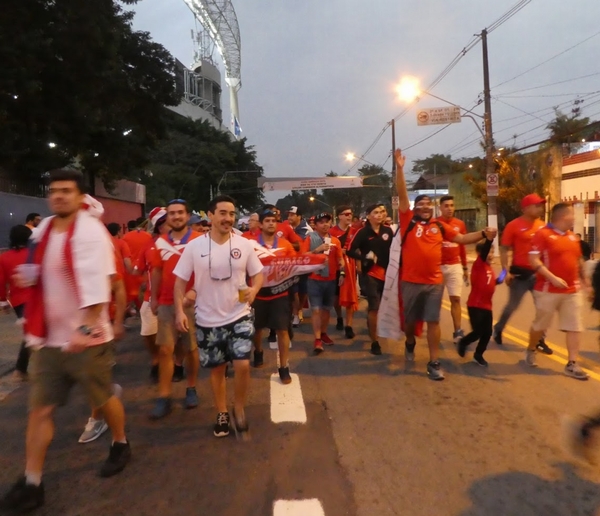 試合前にスタジアムに向かうチリのサポーターたち(写真)元川悦子