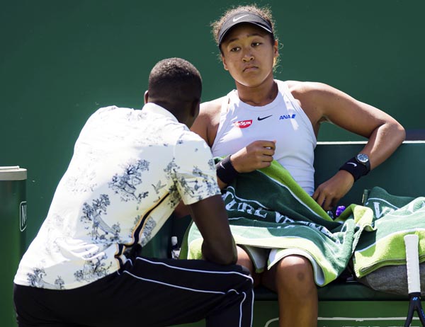 ジェンキンス・コーチの助言を聞く大坂だが…(C)共同通信社