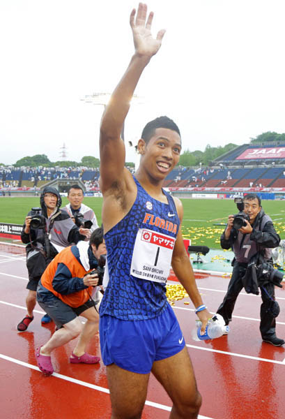 200メートル決勝で優勝し観客の声援に応え手を振るサニブラウン(C)日刊ゲンダイ