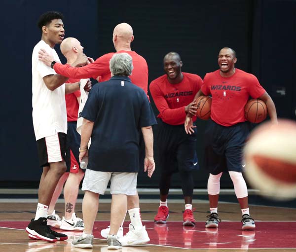 八村は若手にいじられる(C)共同通信社