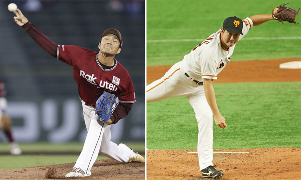 楽天・則本(左)とプロ同期の巨人・菅野(C)日刊ゲンダイ