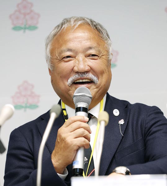 “ひげ森さん”の愛称で親しまれる森重隆日本ラグビー協会新会長(C)共同通信社