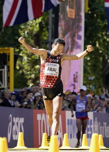 2017年の世界陸上50キロ競歩で銀メダルの荒井広宙(C)共同通信社