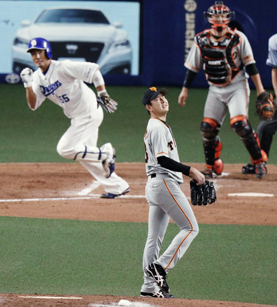 四回、福田に適時二塁打を浴びる野上(C)共同通信社