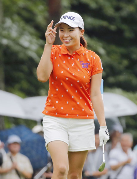 渋野はこの日も笑顔でプレー(C)共同通信社
