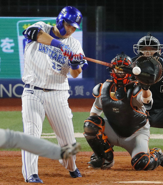 五回に中越え適時二塁打を放つ筒香(C)共同通信社