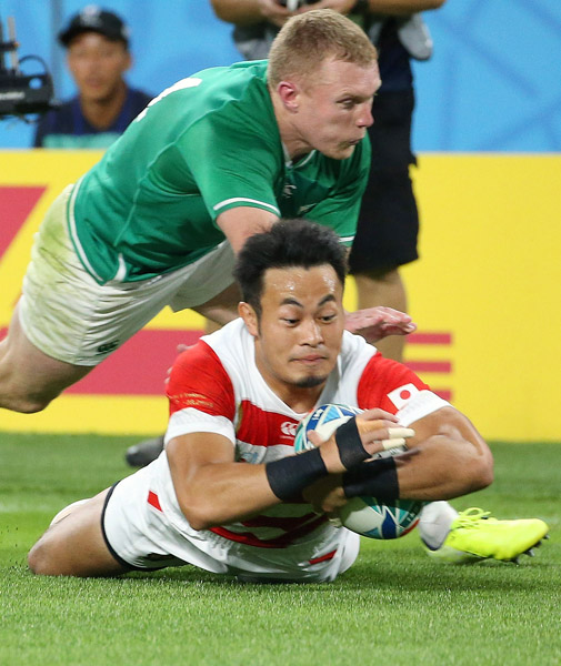 アイルランド戦の後半、逆転のトライを決める福岡(C)日刊ゲンダイ