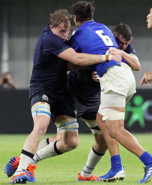 グレイ(左)のタックルは強烈だ(C)日刊ゲンダイ
