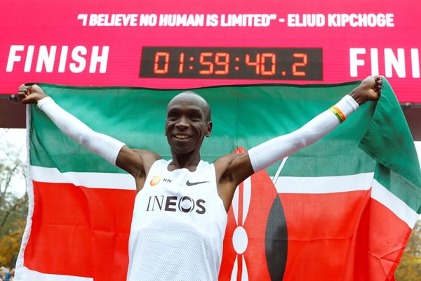 マラソンで人類初の2時間切り キプチョゲが1時間59分40秒