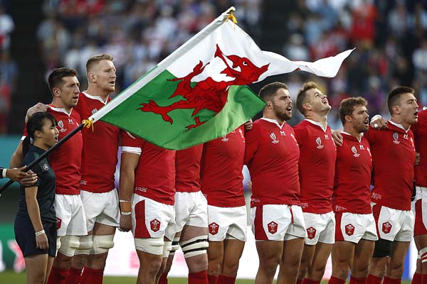 開戦前に国歌斉唱するウェールズ代表の選手たち(C)ロイター