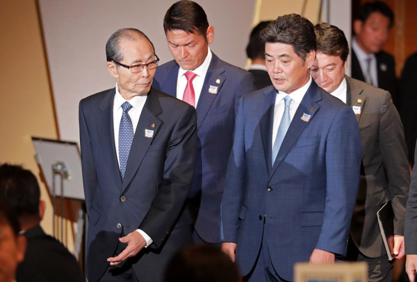 王会長(左)の一芝居も水の泡(右は工藤ソフトバンク監督)/(C)日刊ゲンダイ
