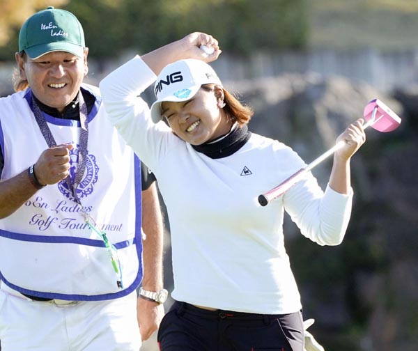 最終18番バーディーで勝負を決めた鈴木(C)共同通信社