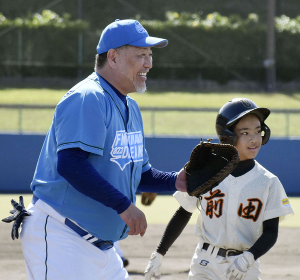 1406日ぶりのユニフォームに照れ臭そうだったが…小学生との試合で笑顔/(C)共同通信社
