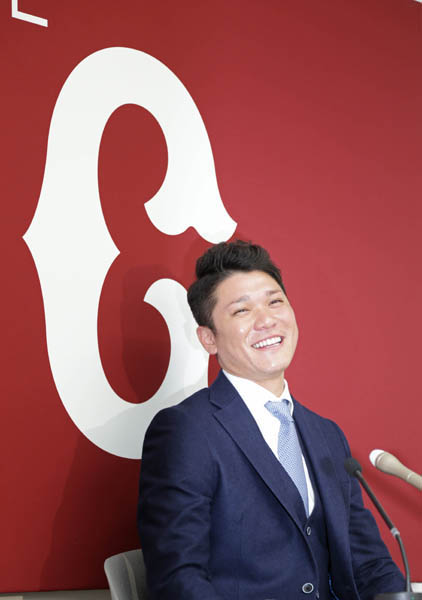 会見で笑顔の坂本(C)日刊ゲンダイ