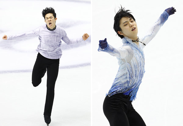 ネイサン・チェンと羽生結弦(C)共同通信社