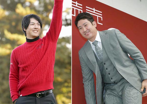 ゴルフの石川遼(左)と巨人の菅野智之(C)共同通信社