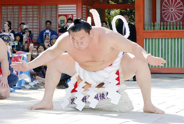 雄々しい土俵入りをしたかったのだろうけど(C)共同通信社