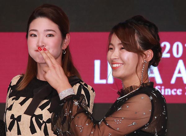 おちゃめな2人!(渋野日向子=右、と原英莉花)/(C)日刊ゲンダイ