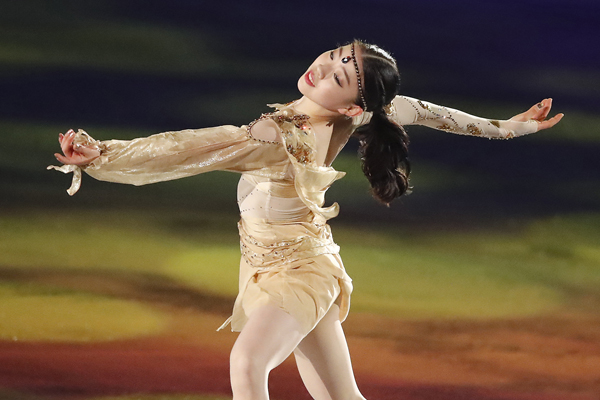 エキシビション「オールジャパン メダリスト・オン・アイス2019」で演技を披露する紀平(C)日刊ゲンダイ