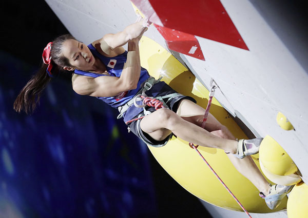 クライミング世界選手権・女子複合決勝、リードの野口啓代(C)共同通信社