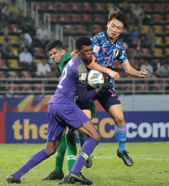 サウジGKと交錯するFW上田(C)Norio ROKUKAWA/Office La Strada