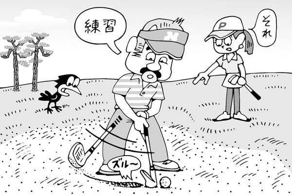 バンカー外の砂地の練習スイングでクラブが砂に触れたケース