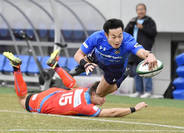 開幕戦で2トライを挙げた福岡(C)共同通信社