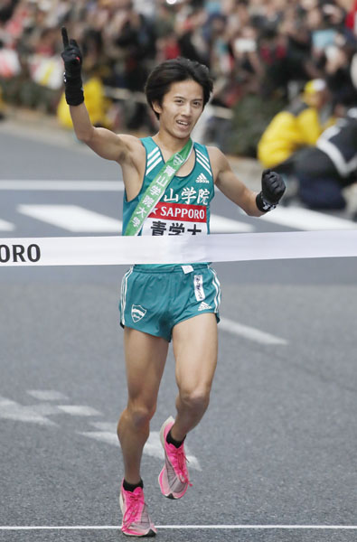 今年の箱根駅伝で優勝した青学の湯原選手も履いていた(C)日刊ゲンダイ