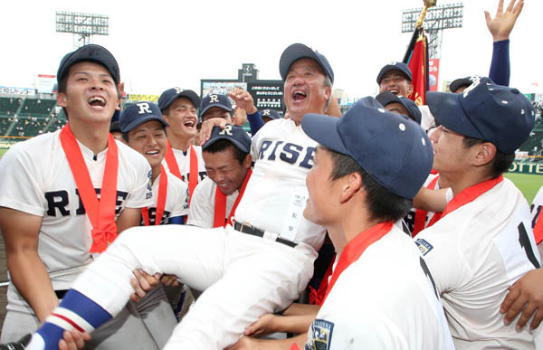 昨夏の甲子園を制した履正社・岡田監督(中央)/(C)日刊ゲンダイ