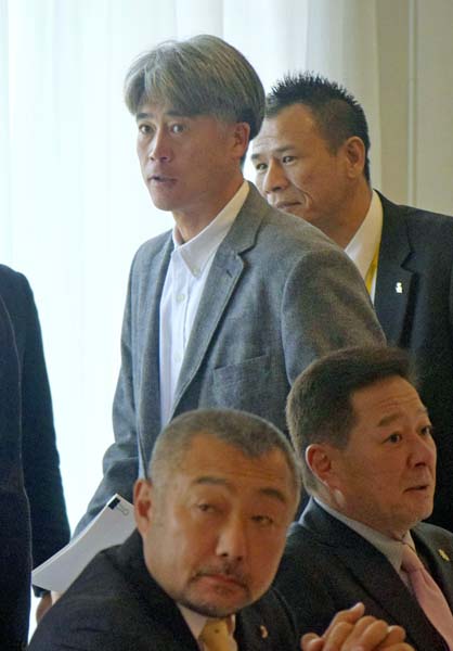 スタッフ会議に出席した城島アドバイザー(C)共同通信社