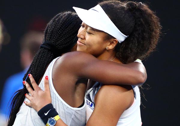 ガウフ(左)に敗れて抱擁する大坂(C)ロイター