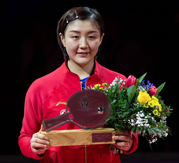 ドイツOP女子シングルス優勝の陳夢(C)DPA /共同通信イメージズ