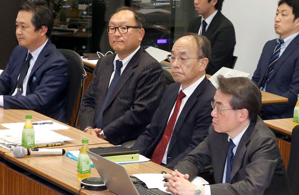 会議に出席する巨人の今村球団社長(左から2番目)ら(代表撮影)