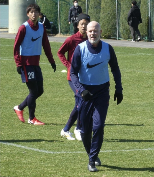 ゲーム形式の練習に参加するザーゴ監督(写真)元川悦子